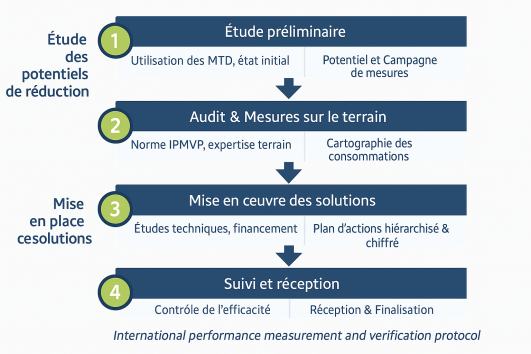 L'étude d'efficacité énergétique se déroule en 3 phases.
