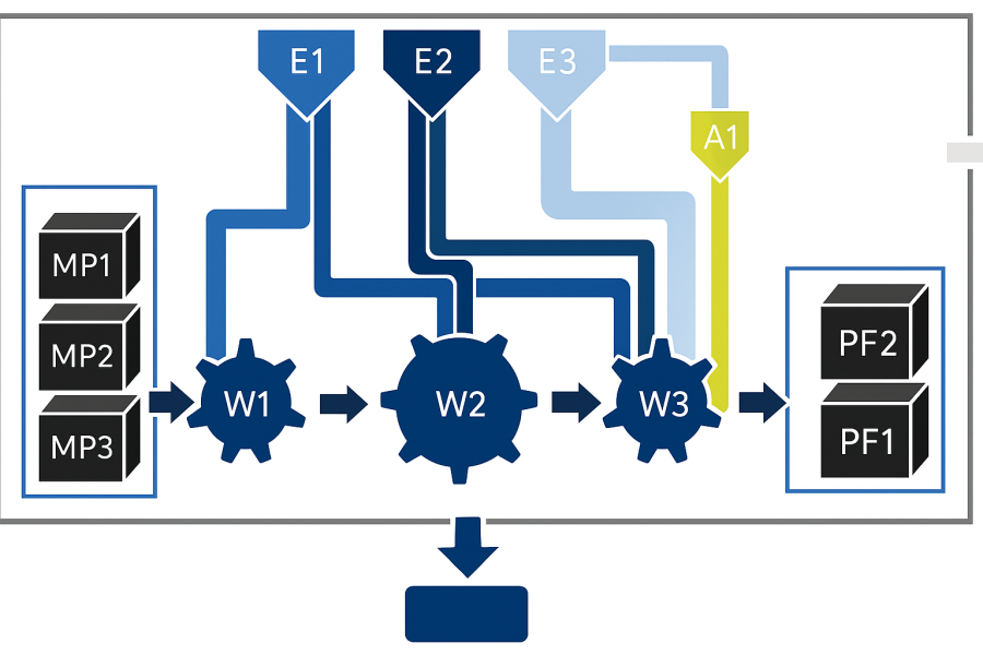 ELVIA Ingénierie approfondira les axes de travail préférentiels retenus en établissant les besoins en énergie (en quantité et qualité, suivant les cycles de production et dans le temps) des différents processus, et les moyens énergétiques associés, ainsi que la fourniture en utilités.