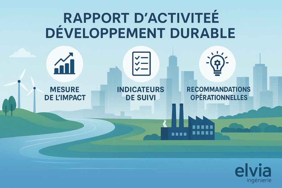 Chez Elvia Ingénierie, nous vous accompagnons dans la production de rapports d’activité et de développement durable : un outil complet permettant d’évaluer vos performances environnementales, énergétiques et sociétales — de façon rigoureuse, chiffrée et opérationnelle.
