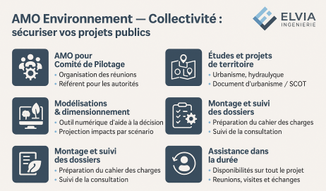 Pour les collectivités territoriales, l’AMO Environnement constitue un outil essentiel pour intégrer les enjeux de développement durable dans les projets d’aménagement, les documents d’urbanisme (PLU, PLUi, SCOT) et les projets d’infrastructures.
