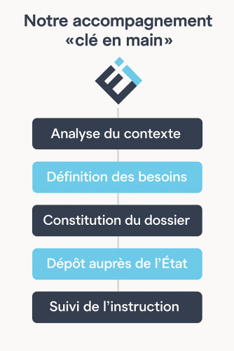 complet : cadrage initial, préparation du dossier, échanges avec les instructeurs, réponses aux remarques, justification des évolutions et sécurisation du document.