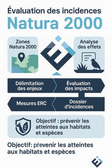 L’évaluation des incidences Natura 2000 vise à vérifier qu’un projet, plan ou programme n’est pas susceptible d’affecter de manière significative un ou plusieurs sites Natura 2000. Ces zones protégées constituent un réseau écologique européen visant à préserver la biodiversité et les habitats naturels les plus sensibles.