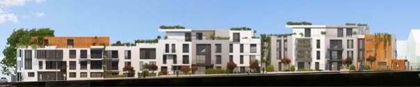 L’étude a également pris en compte les enjeux de vis-à-vis, de protection de la vie privée et de co-visibilité, en particulier pour les habitations situées en retrait immédiat du projet. Elvia a formulé des préconisations d’aménagement et de volumétrie pour minimiser les nuisances visuelles : orientation des volumes, retraits en toiture, traitement des façades, maintien de transparences visuelles vers les cœurs d’îlot.