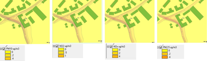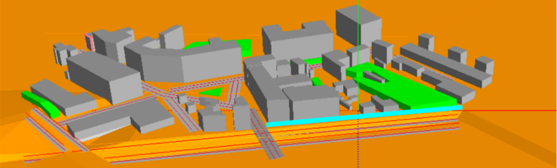 Simulation de la dispersion des polluants atmosphériques en cœur d’îlot. Résultats positifs malgré une hausse prévisible du trafic. Amélioration nette des conditions de qualité de l’air grâce à l’effet barrière des bâtiments et à la végétalisation.
