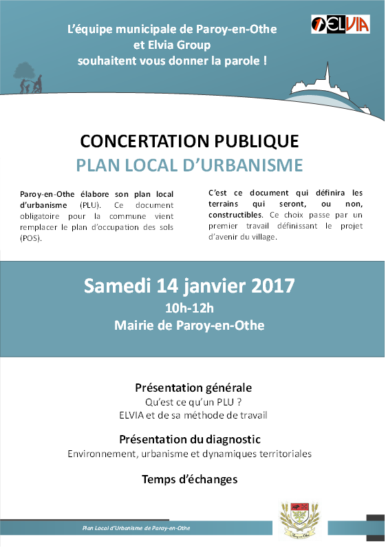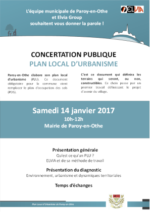 • Registre de concertation accessible en mairie durant toute la procédure.