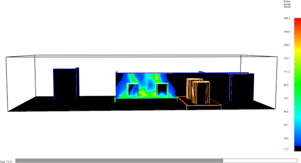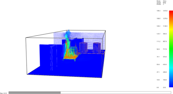 Les modélisations ont été réalisées avec les outils numériques FDS (Fire Dynamics Simulator) et Flumilog, permettant d’évaluer la cinétique des incendies, le transfert de chaleur, le rayonnement thermique, ainsi que la dispersion et la toxicité des fumées.