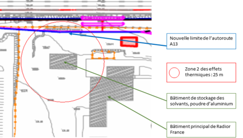 Seul le site RADIOR France présentait un risque significatif vis-à-vis du nouveau tracé.