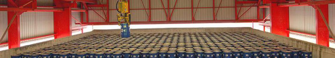 Les déchets FMA-VC sont généralement compactés et conditionnés dans des conteneurs métalliques ou en béton adaptés au stockage de surface.